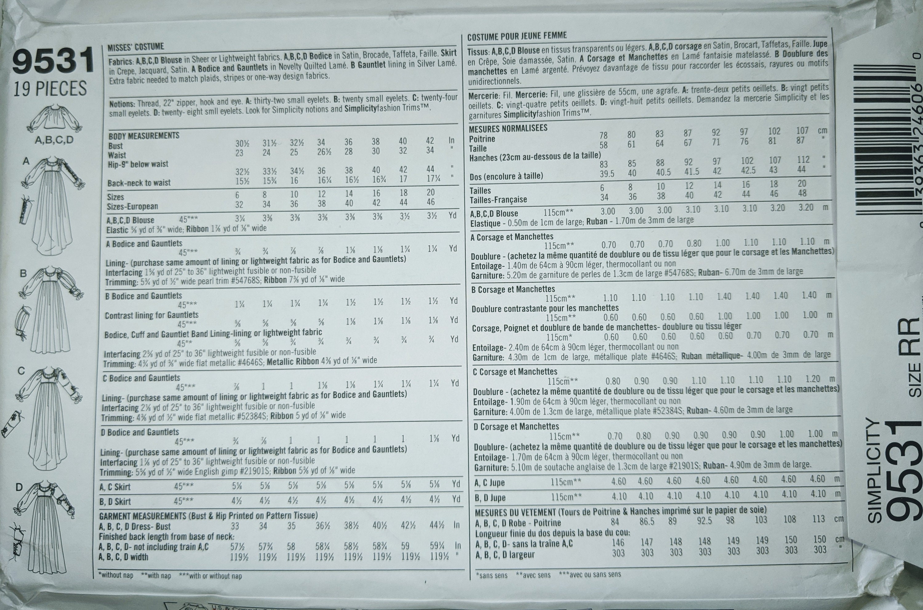 Simplicity Pattern 9531 Renaissance By Andrea Schewe Etsy De